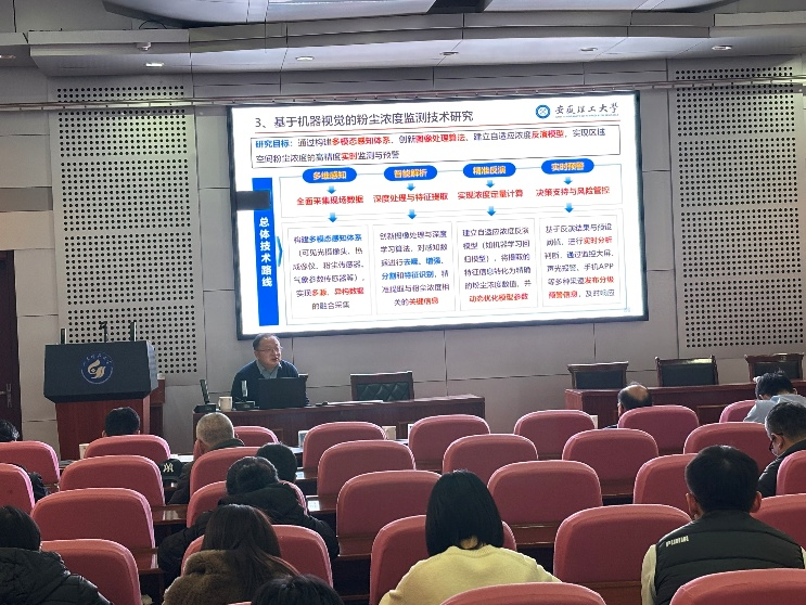 林柏泉教授聚焦“创新团队建设模式、激活人才培养潜力”,分享了科研团队建设与高端人才培养的宝贵经验;高富强研究员以“煤岩非稳定破坏实验与数值模拟研究”为题,深入剖析了煤岩破坏的力学机制与数值模拟关键技术,为矿山动力灾害防控提供了重要理论支撑;康凤新研究员详解“煤田地热赋存特征与形成机制”,为地热资源绿色开发与矿山能源转型提供了新思路;王杰教授介绍了“粉尘浓度在线监测与粉尘职业危害预警新技术”,提供了煤矿粉尘精准传感检测技术方案。报告结束后,专家与师生围绕学科建设、科研合作等议题展开深入研讨,碰撞出思想火花。
