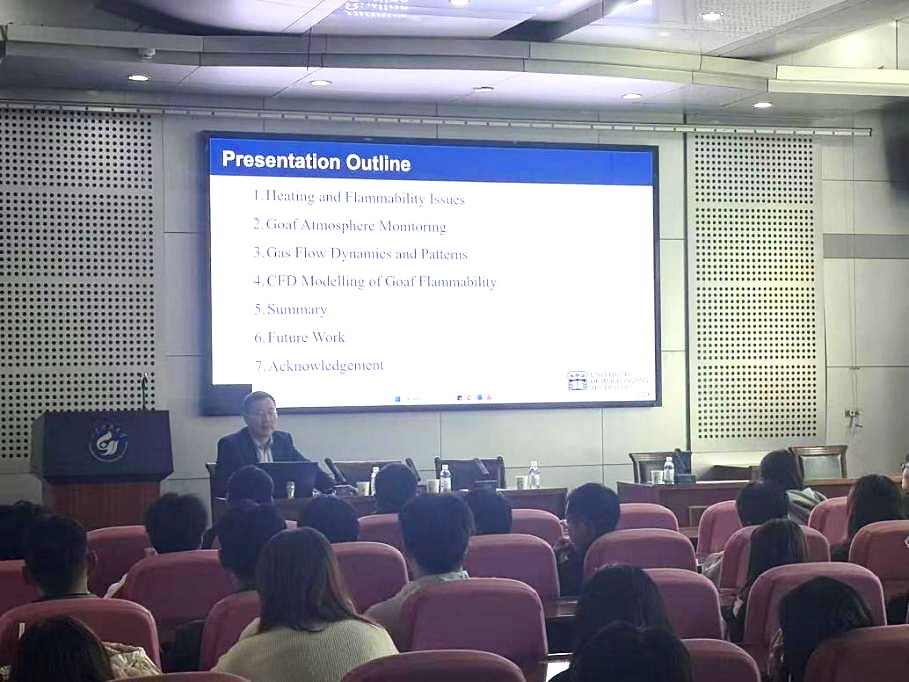 4月22日下午,学院特邀任廷祥教授分别以“Inertisation of Goaf Heating and Flammability in High-production Gassy Longwall”与“Mitigating Respirable Mine Dust: Integrating CFD Simulation, Lab Testing, and Field Validation”为题,为全院硕博研究生开展两场专题讲座。讲座中,任廷祥教授系统阐释了高瓦斯高产工作面采空区自燃防控与惰化调控的联动控制机理,详细介绍了将CFD数值模拟、实验室试验与现场工程验证深度融合的一体化粉尘防治研究体系。针对研究生提出的科研疑问与研究难点,任教授逐一细致解答。两场报告学术氛围浓厚,参会学生积极交流提问,有效开阔了研究生的学术视野,为后续科研工作开展拓宽了研究方向与创新思路。(编辑:冷冬阳;审核:于海明)