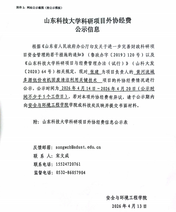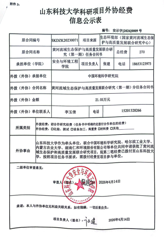 山东科技大学横向科研项目外协经费公示信息