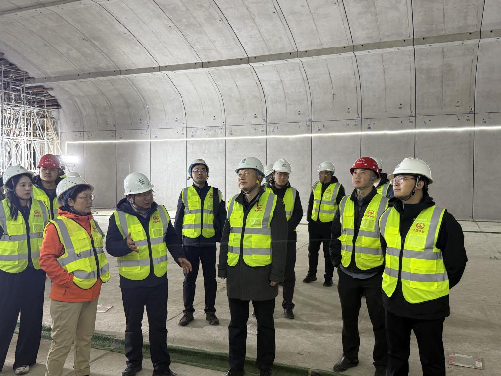 活动首站,中心组一行来到正在施工中的青岛地铁红树林站建设工程现场。工程负责人介绍了红树林装配式车站工程规划施工进度、饰面高性能混凝土施工等创新性技术及安全保障措施,带领各位党员深入施工现场详细观摩车站基坑工程、主体结构施工工艺以及现场作业管理。大家重点考察了解项目建设中的安全风险管控体系,包括高空作业、临时用电、大型机械管理等关键环节的标准化流程与智能化监控手段。青岛地铁在复杂地质条件下攻坚克难,同时将安全管理贯穿每一个细节的实践,为安全工程学科的现场教学提供了鲜活教材。