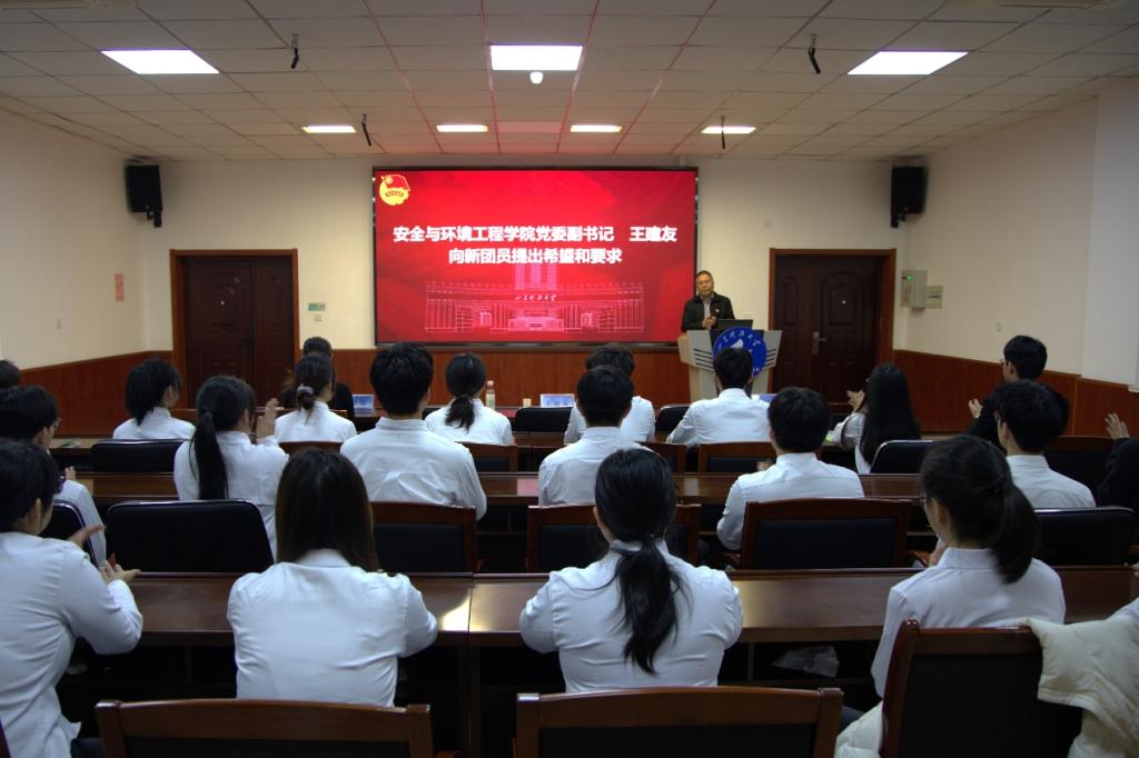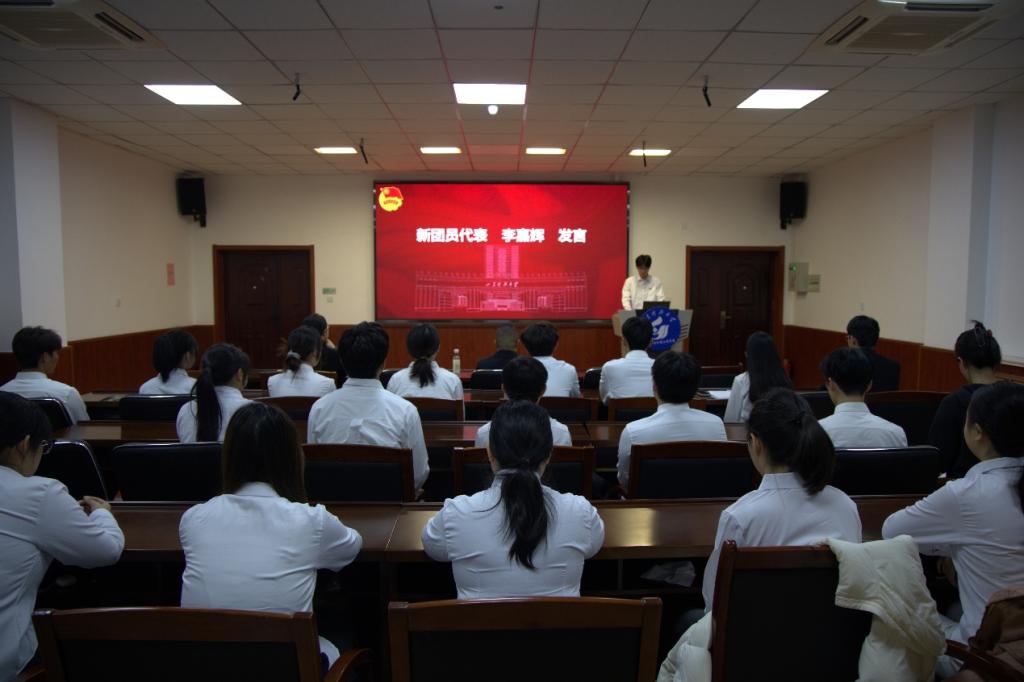 王建友强调,共青团是与党同心、与时代同行的先进青年的群团组织,共青团员要将个人理想融入国家发展伟业,并对新发展团员提出三点殷切希望:一要坚定理论学习之基,成为新时代思想的忠诚追随者。要主动通过“青年大学习”“主题团日”等平台汲取思想养分,持续深化理论武装,将先进思想内化于心、外化于行,始终保持坚定的政治自觉。二要锻造实干笃行之才,做现代化征程的先锋闯将。要将专业学习与社会实践紧密结合,既夯实学业根基,也勇于投身科技创新、志愿服务一线,在实践中经风雨、见世面、长才干。三要勇担时代使命之责,做从严治团的先锋模范。要以更高标准要求自己,严守团的纪律,在同学中发挥榜样作用,让胸前的团徽不仅闪耀着荣誉,更彰显着责任与担当。