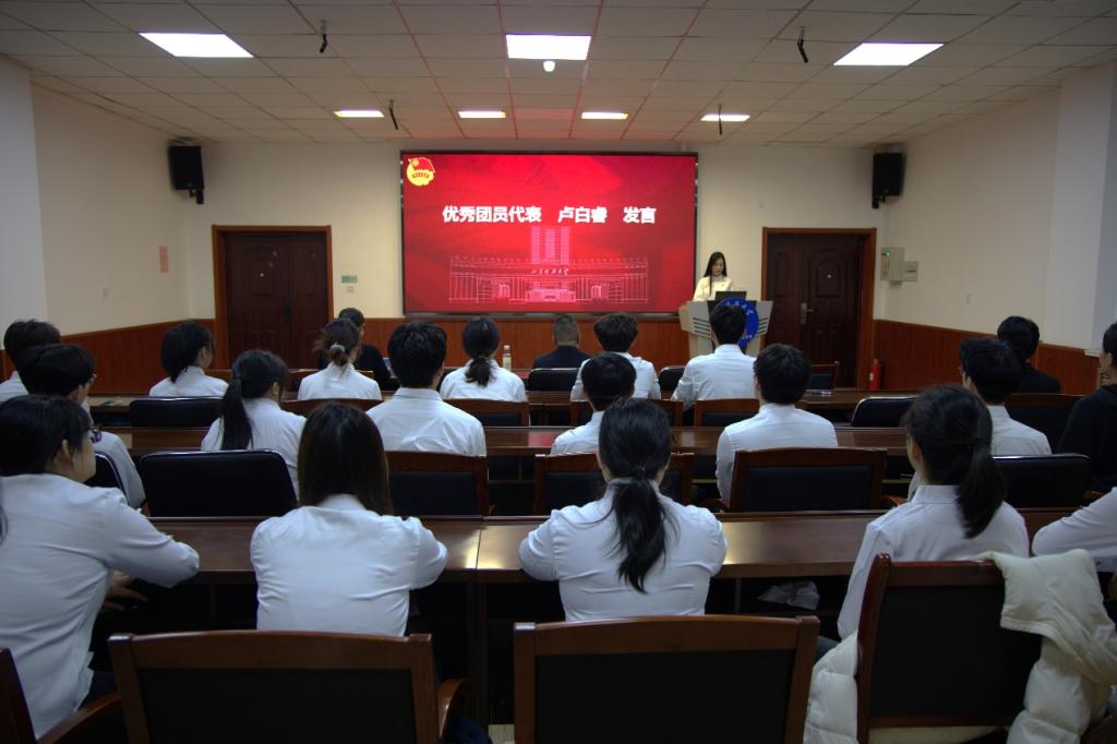 安全工程2023-1班卢白睿作为优秀团员代表向组织汇报了入团以来的自身成长,在团组织的鼓励与支持下,在学习科创、文体活动、社会实践等方面均取得优异成绩,并向新发展团员提出传承红色基因、紧跟党组织步伐,在中国式现代化征程上挺膺担当,为民族复兴贡献青春力量的倡议。